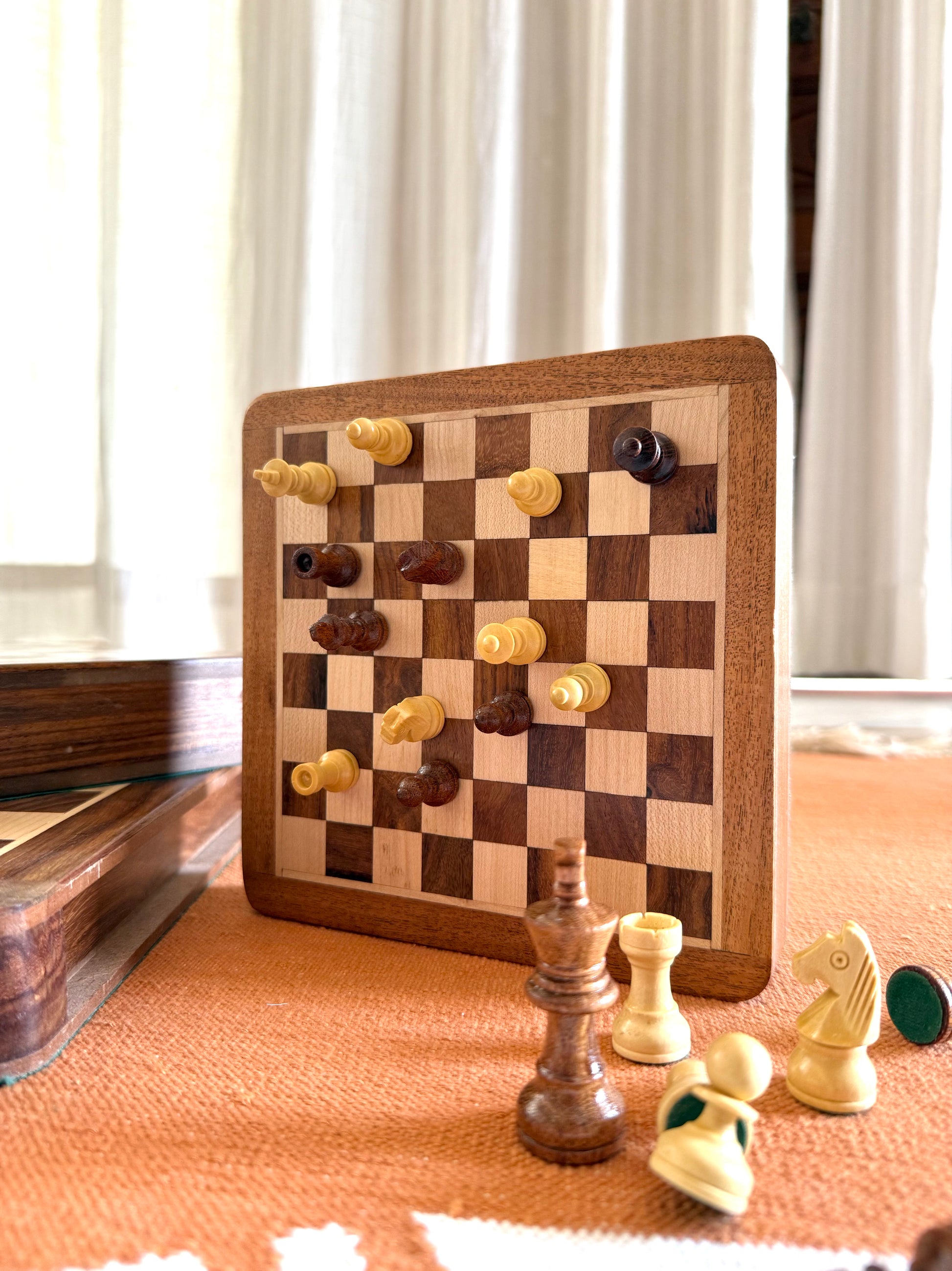 7 inch wooden chess board set – compact & portable