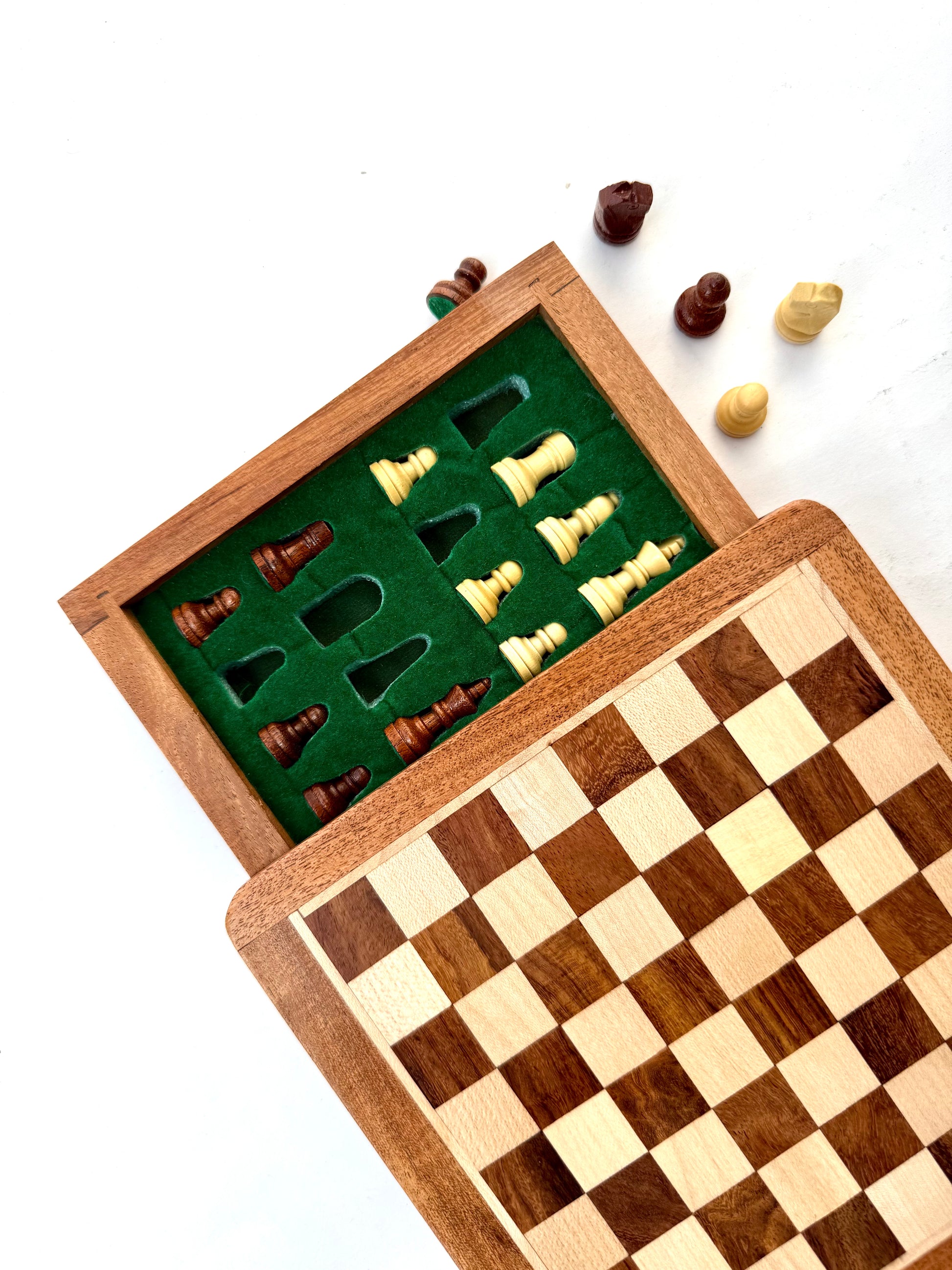 7-Inch Wooden Magnetic Chess Set with Drawer | Travel Wooden Chess Board Set
